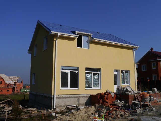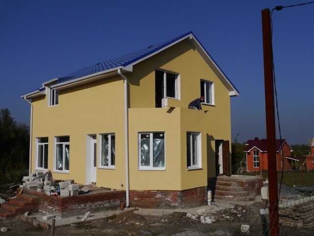 Декоративно-отделочная защитная штукатурка "Шубка" является самым недорогим вариантом отделки дома снаружи.
